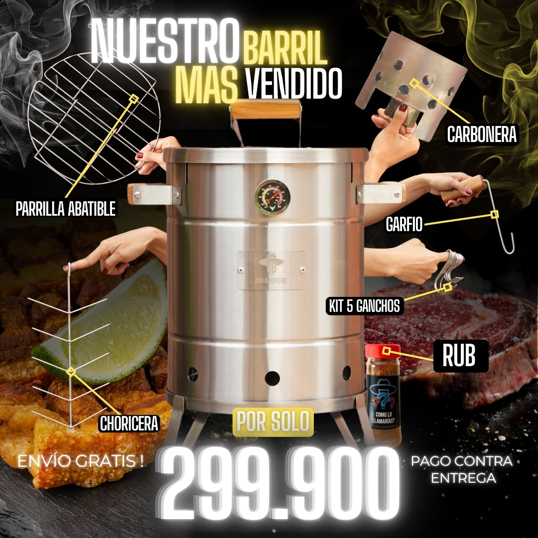 🔥 Cocina con 95% menos humo, ideal para usar en patios, terrazas ¡e incluso interiores! 🧽 Limpieza rápida y materiales 100% acero inoxidable 🥩 Resultados jugosos, ahumados y cocción uniforme 👨👩👧 Perfecto para reuniones familiares y amigos 💥 Es el asador que todos están buscando en Colombia. ¡Y lo tenemos por tiempo limitado!